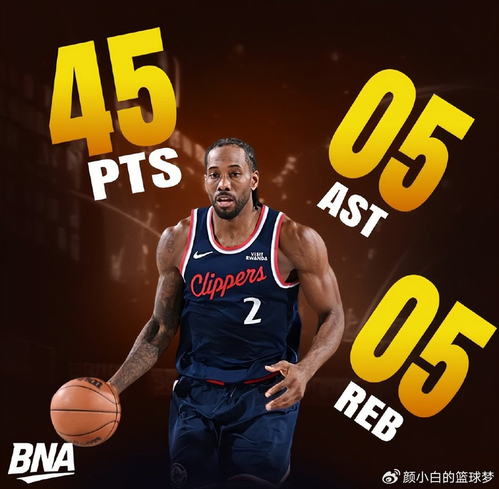 4.单场45+5+5成为快船队史第四人:弗里、保罗、乔治、小卡;